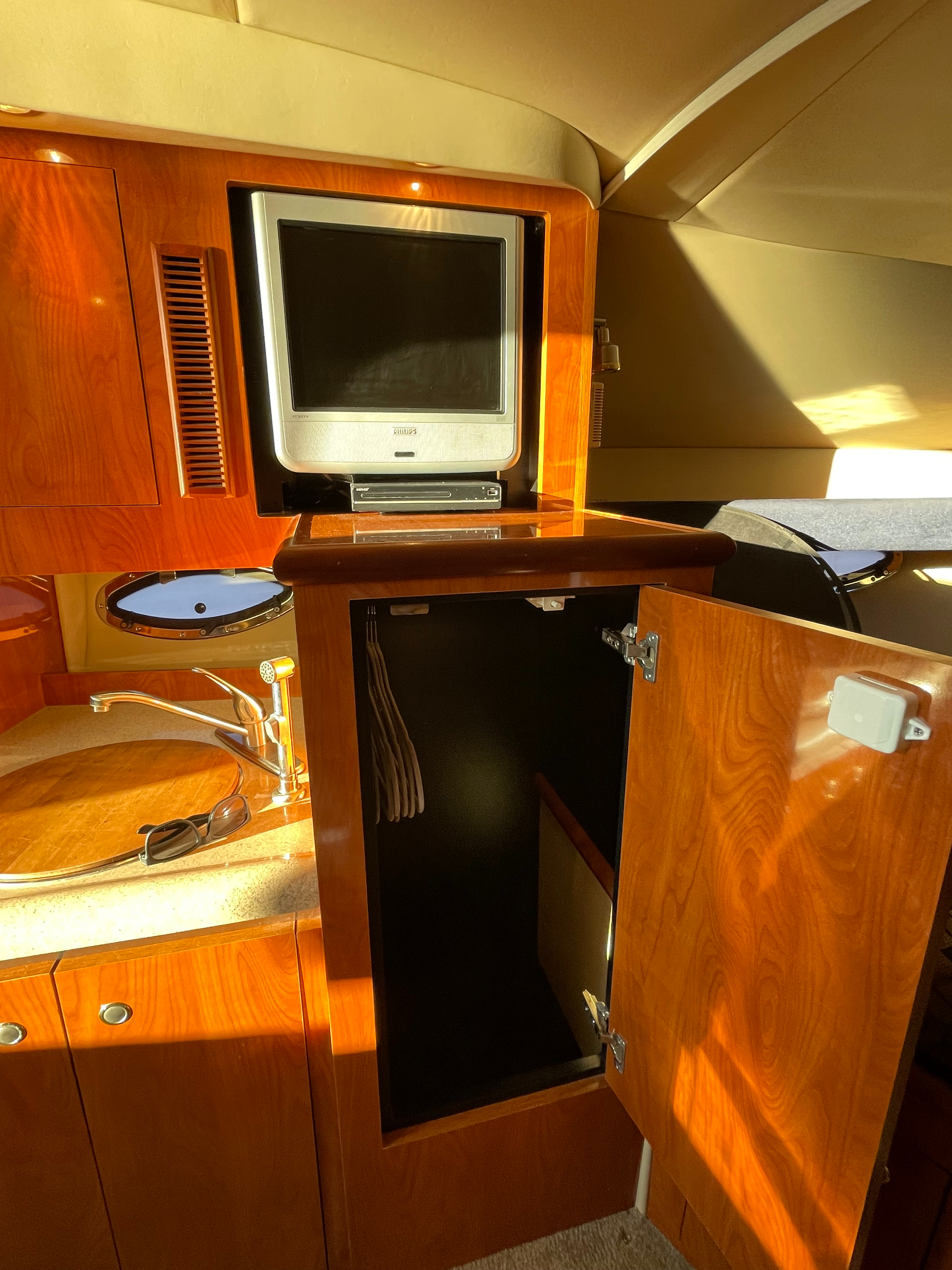 - Open floor plan down in the boat provides a fantastic space while the privacy curtains and layout effectively filter out noise between the cabins